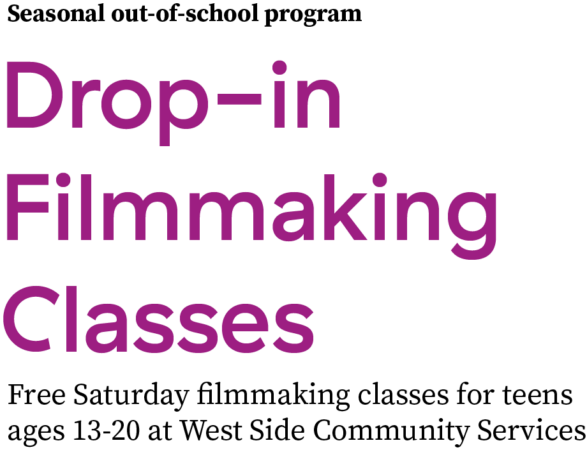 Squeaky Wheel offers youth media arts education programs year-round through out-of-school, weekend, and summer workshops for a variety of ages, skill levels, and interests.
